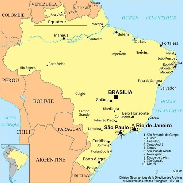 C'est le cinquième plus grand pays de la planète, derrière la Russie, le Canada, les États-Unis et la Chine. Le Brésil a pour langue officielle le portugais alors que la plupart des pays d'Amérique latine ont pour langue officielle l'espagnol. Le président est élu pour un mandat de quatre ans, et peut être réélu une fois. Le président actuel est Luiz Inácio Lula da Silva, né le 27 octobre 1945,