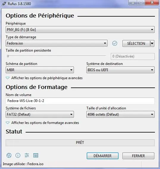 car vous n'avez pas de graveur de DVD. Dans cet exemple, j'ai téléchargé la distribution Fedora (2 Go environ) A partir d'un ordinateur Windows, vous allez créer une clé bootable : Téléchargez Rufus (1 Mo) Sur le répertoire de téléchargement vous avez deux fichiers: